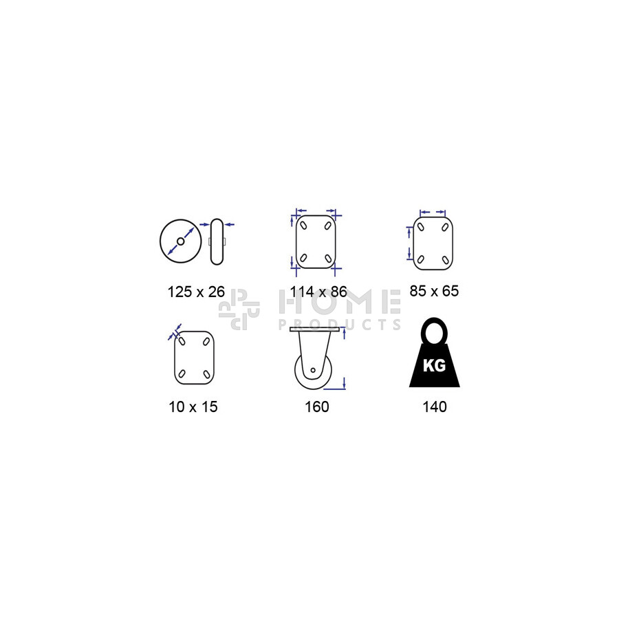 Rubber wheel, 125 mm 140kgSpecifikationer