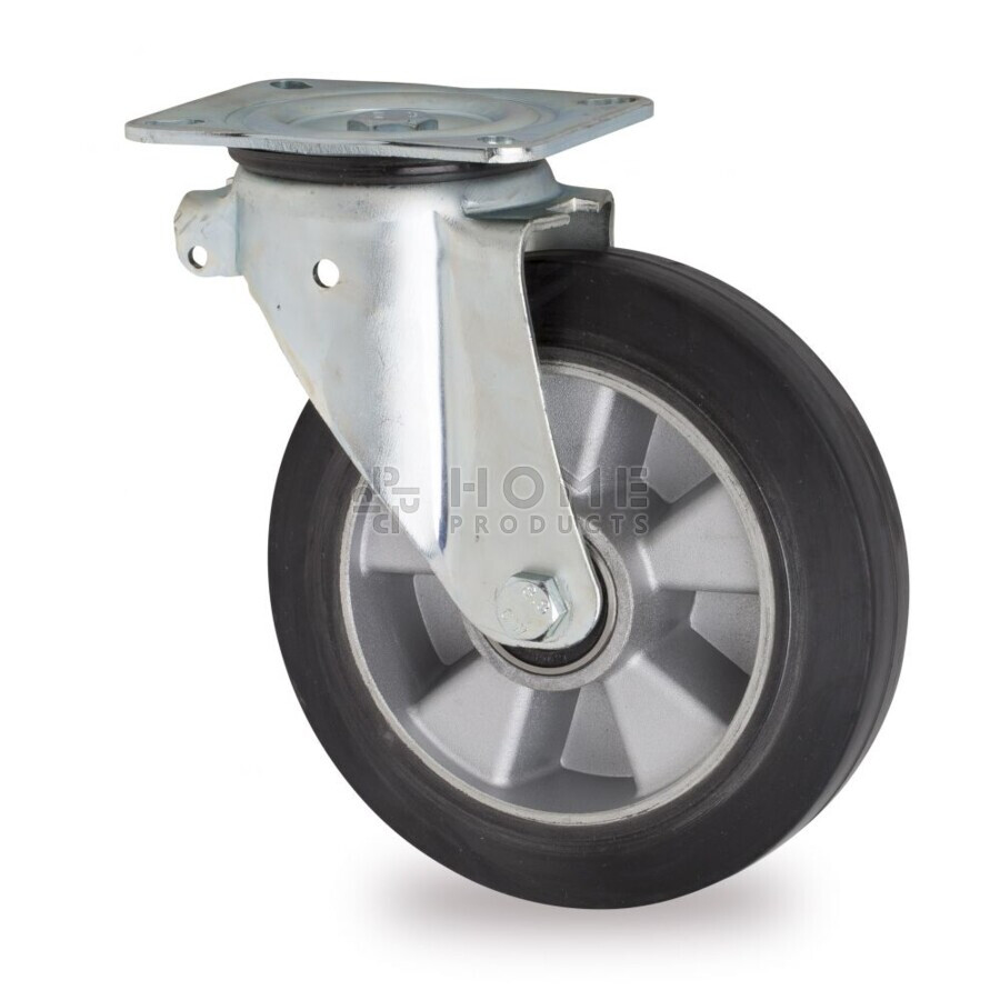 Swivel castor, diameter 160 mm, elastic rubber tire, load capacity up to 300 kg, aluminum core