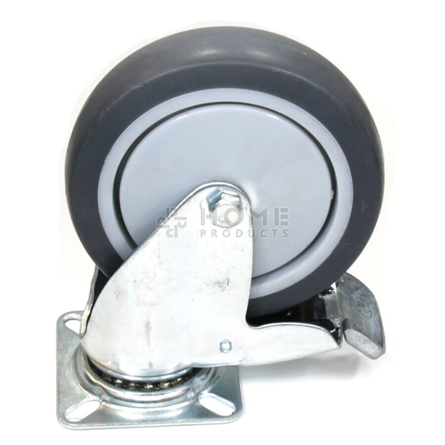 Swivel castor with brake, 100 mm diameter, non-marking rubber tire, load capacity up to 80 kg