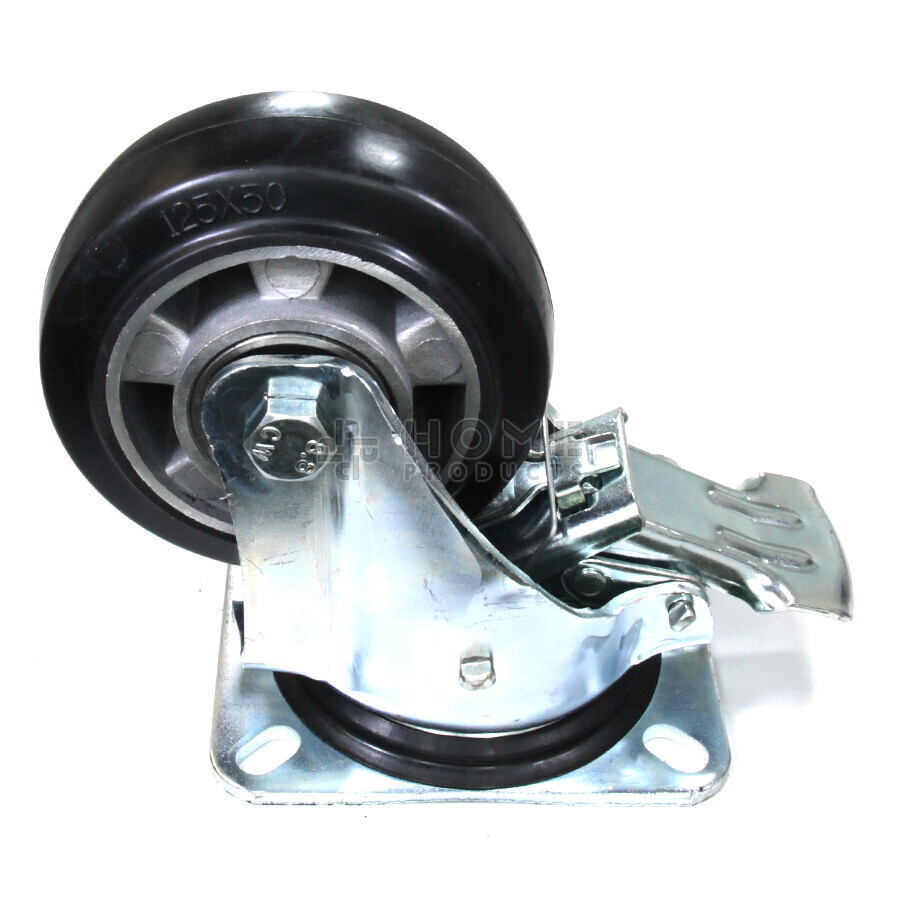 Swivel castor with brake, diameter 125 mm, elastic rubber tire, load capacity up to 250 kg, aluminum core