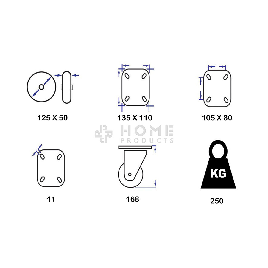 Applications: Industrial carts, material handling in factories, waste containers, transport containers, metal working and chemical companies, medium load roll containers, tool trolleys, warehouse carts.