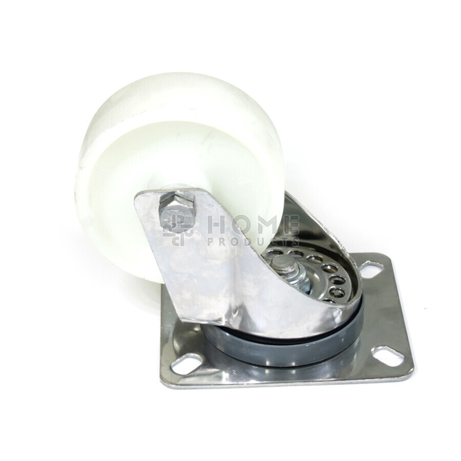 Advantages: The polyamide wheels have a low rolling resistance, offer good handling on flat surfaces, are shock and impact-resistant and resistant to corrosion because of the stainless steel wheel fork.